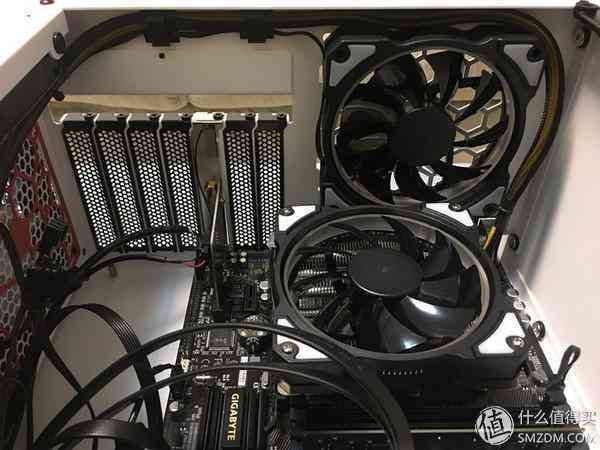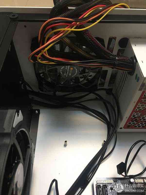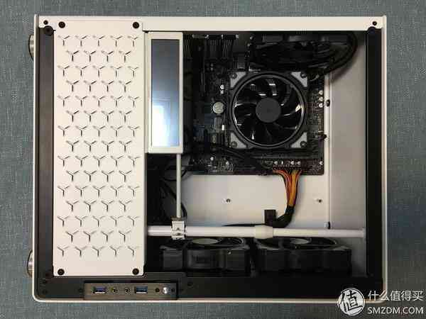 散熱器原來自帶的風扇換下來后,我想正好把它用在機箱底部作為進氣風扇,實際上對于TDP 51W的i3-7100來說,根本不存在散熱,風道之顧慮;但是U4機箱,其實是可以裝成小鋼炮的,有個問題是,完全沒有背部走線,只有把線全部壓在收納槽里,用蓋板擋住