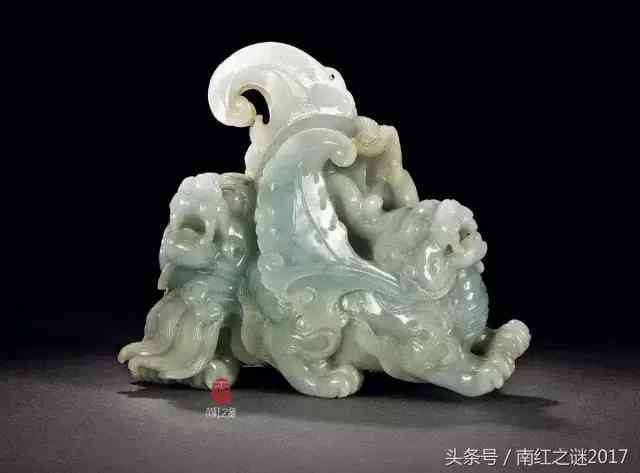 此雕件用整塊翡翠雕琢而成,整體采用圓雕,局部加以透雕陰刻,技藝精湛,做工精美。其內(nèi)容為一雄一雌兩只貔貅。雄性體型較大,頭上獨角,凸目長牙。身上鬃須上卷,雙翅高舉。爪子強壯有力,一條后腿后伸。