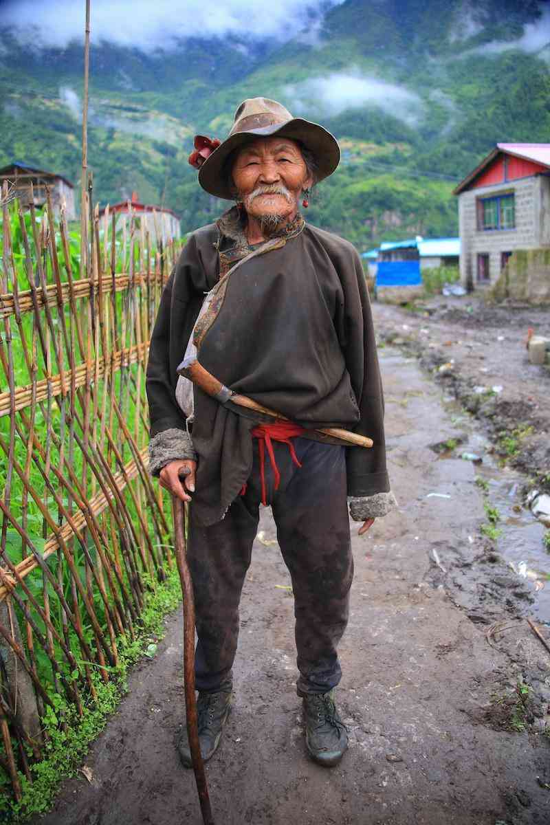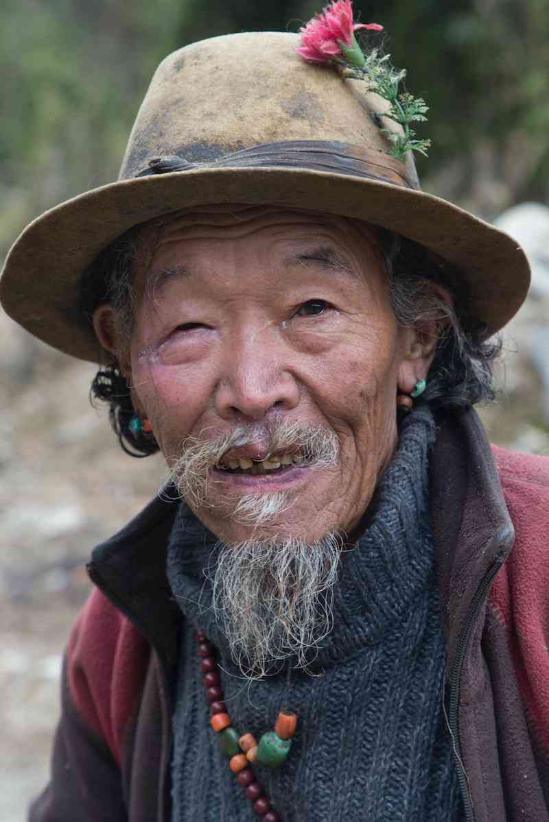 穿著30年前在尼泊爾定制的坎肩的洛堅(jiān)老人 2011年