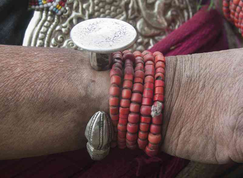 隨著生活的變化,附加在老手鐲上的各種功能:財(cái)富、招財(cái)、防病、治病、祛邪、擋災(zāi)、避難等,不再像以前那么的重視。人們更喜歡戴尼泊爾工匠新制作的純金、純銀手鐲,很多在記憶中有過的老手鐲,被無意中放在某個(gè)角落,被遺忘了。