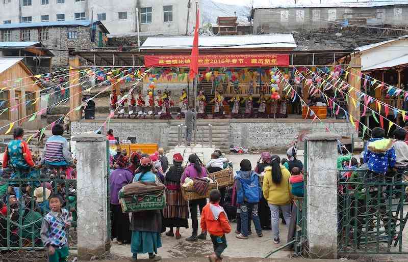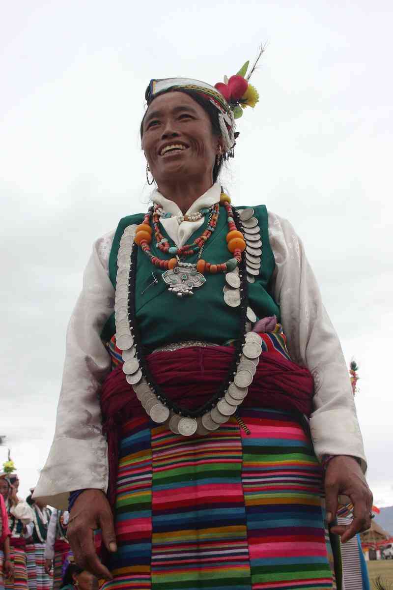 在定結(jié)縣文化節(jié)上唱歌的夏爾巴婦女 2015年