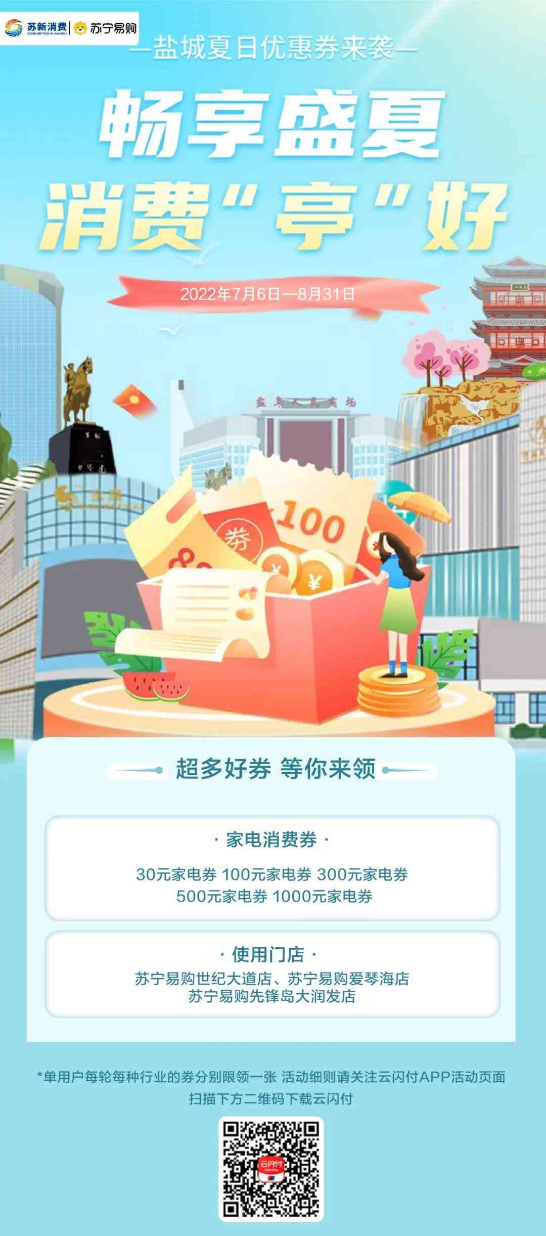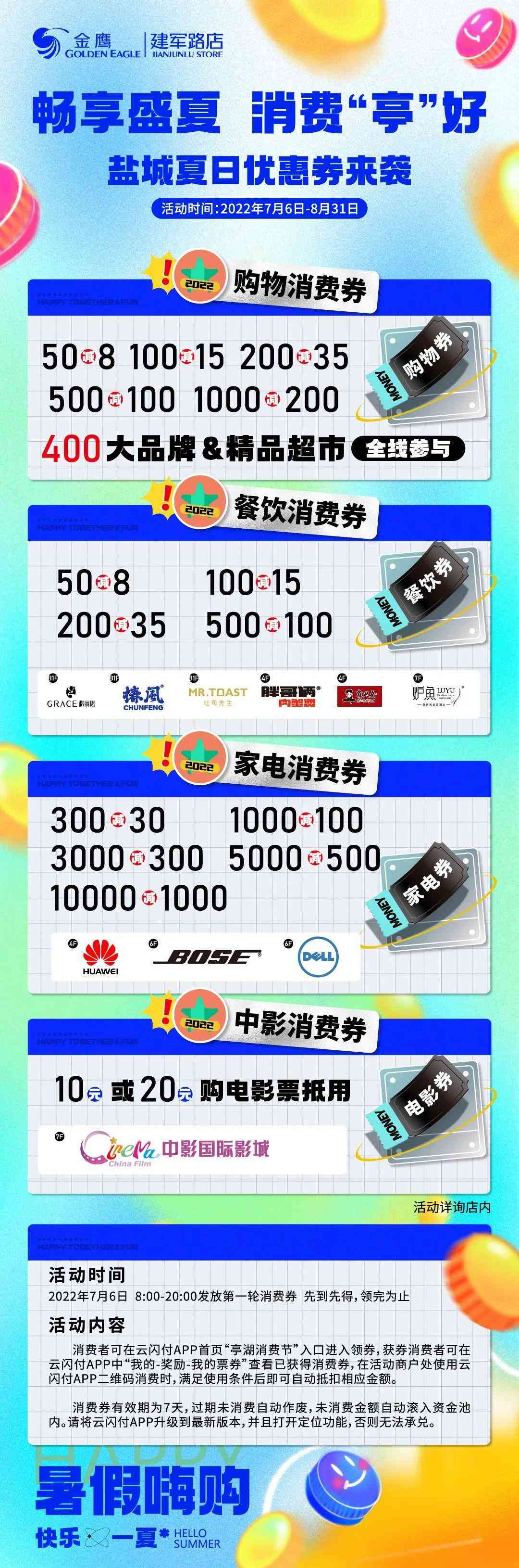(1)購(gòu)物消費(fèi)券:不可在綜合體內(nèi)的家電、娛樂(lè)、餐飲、教育、健身、影院等商戶使用。