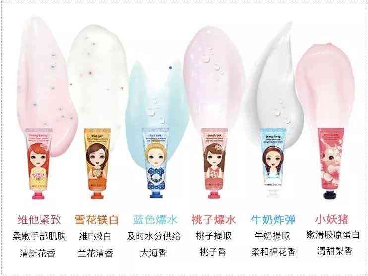 蒂歐絲護(hù)手霜一共有 6 種不同的味道(功效),每一款包裝都很少女,大家可以根據(jù)自己的肌膚情況和喜好選購(gòu)~