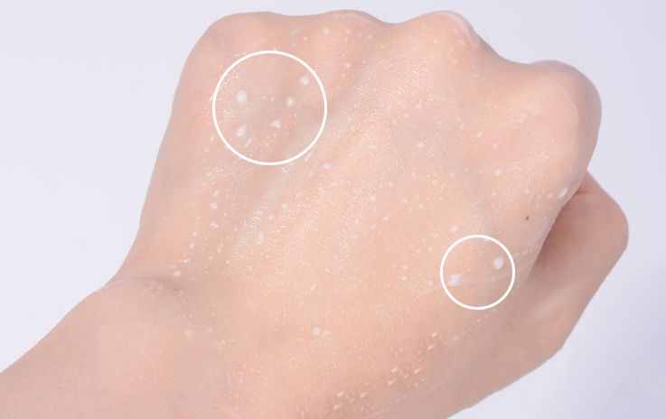 抹在手上幾秒后,就會(huì)爆出細(xì)密的水珠,再抹兩下就被皮膚完全吸收了,雙手像是喝飽了水,潤(rùn)潤(rùn)的!