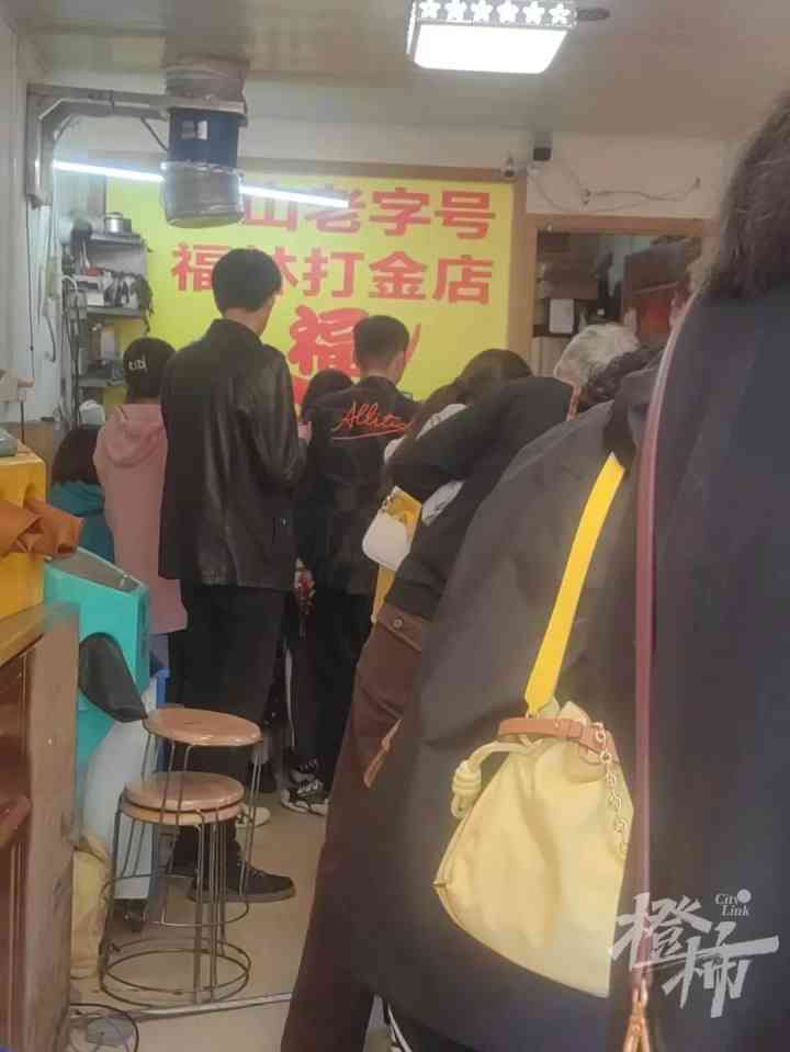 到店的時候是早上10:15,十平米不到的門店里已經(jīng)擠滿了排隊的人,其中大部份都是年輕姑娘和小哥,本來想著跟老板聊上兩句,結(jié)果林師傅的打金臺前面已經(jīng)被年輕姑娘們圍得水泄不通。