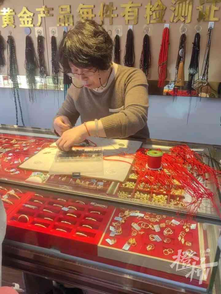 阿姨(方姐)是店里的“設(shè)計大師”,店里很多款式都是她自己設(shè)計的,彩金、鉆戒改款,而且她的手非常巧,來店里買吊墜的小姑娘都指定要方姐來編繩結(jié)。