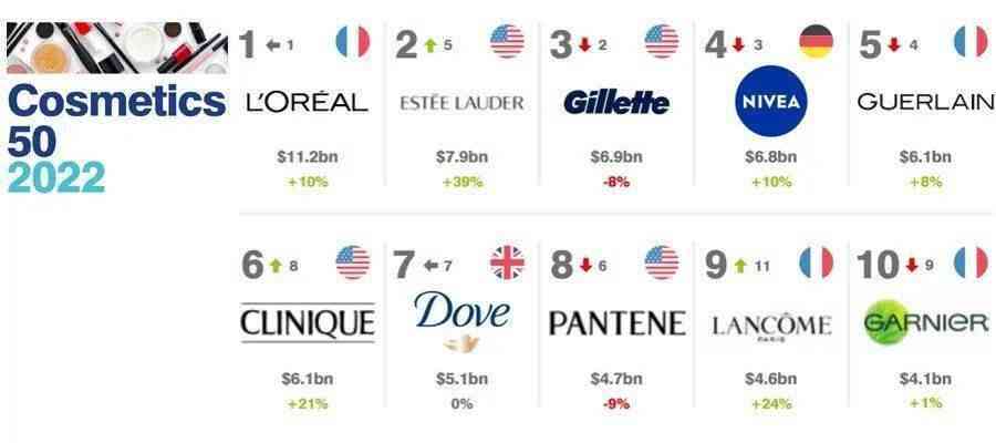化妝品是指以涂抹、噴灑或其他類似方法,散布于人體表面任何部位(皮膚、毛發(fā)、唇齒等),以達到清潔,消除不良氣味、護膚、美容和修飾目的的日用化學工業(yè)產(chǎn)品。市場上品牌琳瑯滿目,下面就根據(jù)Brand Finance發(fā)布的“2022年全球化妝品和個人護理品牌價值50強”,簡單作介紹一下。