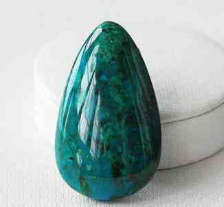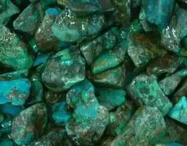 硅孔雀石的外表和孔雀石的極為相似,但硅孔雀石具有比綠松石鮮艷的綠色、藍(lán)綠色,并為亞透明,且折射率、密度、硬度均比綠松石低。