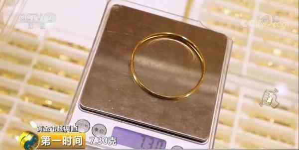 黃金珠寶公司營銷部總監(jiān)董麗娜:面寬、大小差不多的黃金手鐲,5G黃金手鐲的重量是7.30克,而普通的黃金手鐲重量達31.40克。