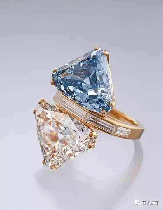 2010 年 10 月,紐約佳士得將此款獨(dú)特的雙寶石鉆石戒指進(jìn)行了拍賣,最終的中標(biāo)價(jià)格為 1,576 萬美元。這枚戒指嵌有一枚重 10.95 克拉的艷彩藍(lán)鉆(寶格麗藍(lán)鉆,自然色,凈度為 VS2)和一枚重 8.87 克拉、凈度為 VS1 的 G 色鉆石,這兩枚鉆石的外觀均為三角形。