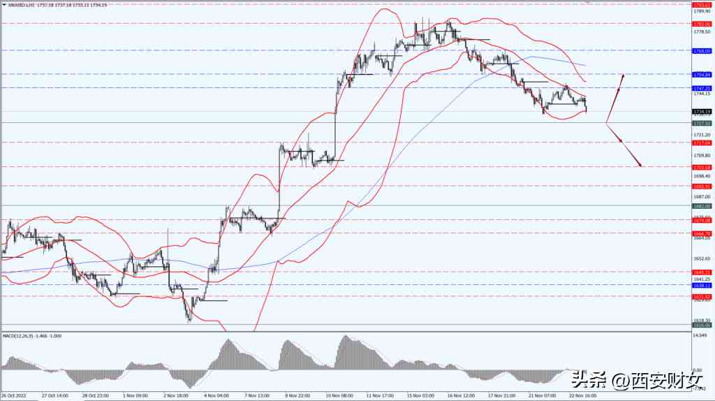 如果金價運(yùn)行于 1727 一線下方,屆時則關(guān)注 1717 和 1703 兩個位置的支撐力度;如果金價運(yùn)行于 1727 一線上方,屆時關(guān)注 1747 和 1754 兩個位置的壓制力度。