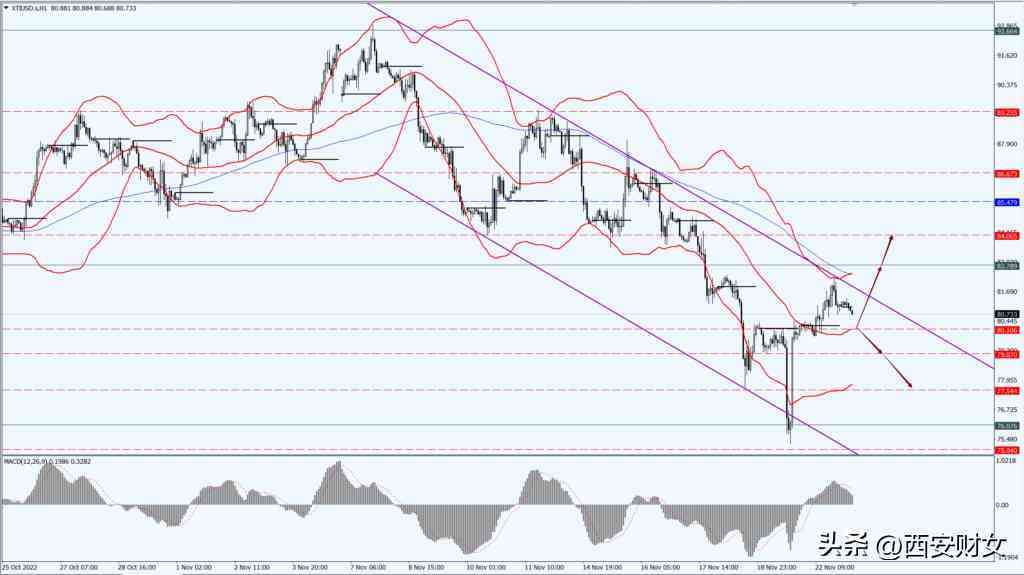 如果油價運(yùn)行于 80.10 一線上方,屆時則關(guān)注 82.78 和 84.06 兩個位置的壓制力度;如果油價運(yùn)行于 80.10 一線下方,屆時關(guān)注 79.07 和 77.54 兩個位置的支撐力度。