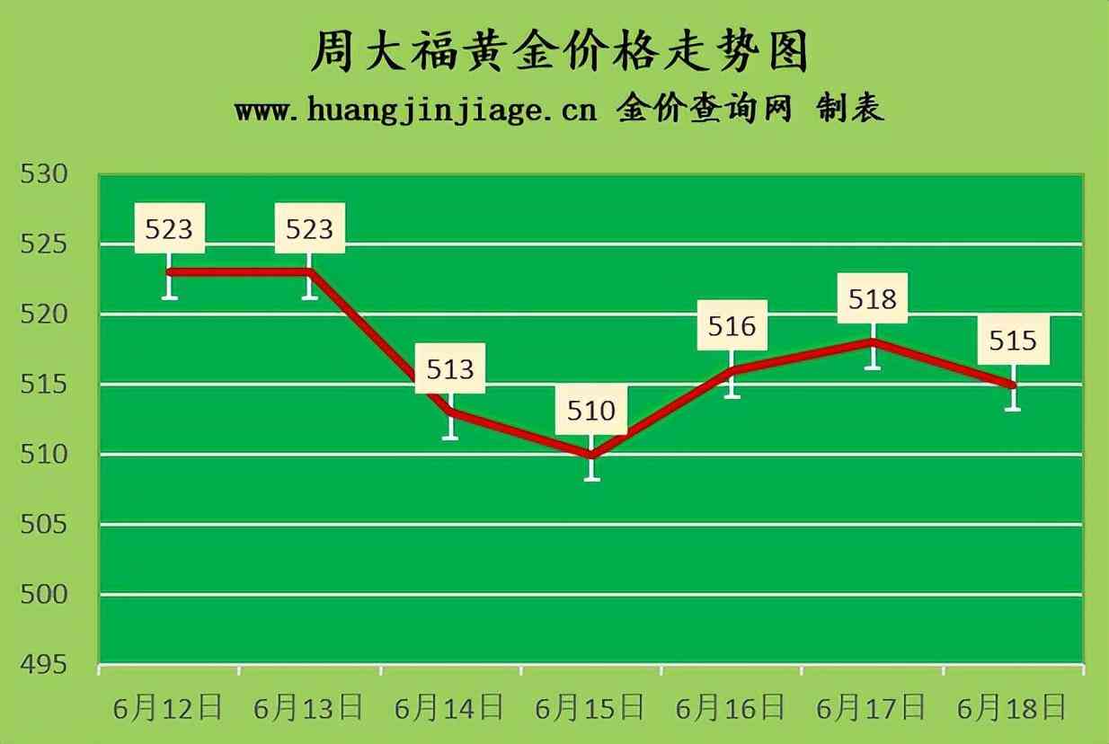 周大福黃金價格515元/克(跌3元),六福黃金價格515元/克(跌3元),周生生黃金價格516元/克(跌2元),金至尊金價515元/克(跌3元),謝瑞麟金價515元/克(跌3元),老鳳祥黃金價格520元/克(漲2元),老廟黃金價格515元/克(跌3元),菜百金價513元/克(持平),周大生金價515元/克(跌3元),中國黃金價格509元(持平),金大福金價510元/克(跌3元),潮宏基金價515元/克(跌3元),周六福黃金價格516元/克(跌3元)。