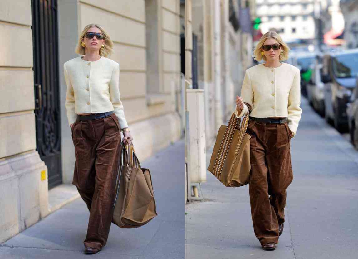衣柜里容易穿出財(cái)閥千金的小香風(fēng)外套很適合與復(fù)古耳夾相配,用復(fù)古感去化解它的貴氣顯得更會(huì)穿。elsa hosk這套白色小香風(fēng)搭配棕色燈芯絨闊腿褲,再配上一副金色復(fù)古大耳夾的look就很復(fù)古,鞋包的搭配也輕松,去掉了小香風(fēng)外套的“用力感”。像有品位的時(shí)髦小姐姐出門買杯咖啡看展~