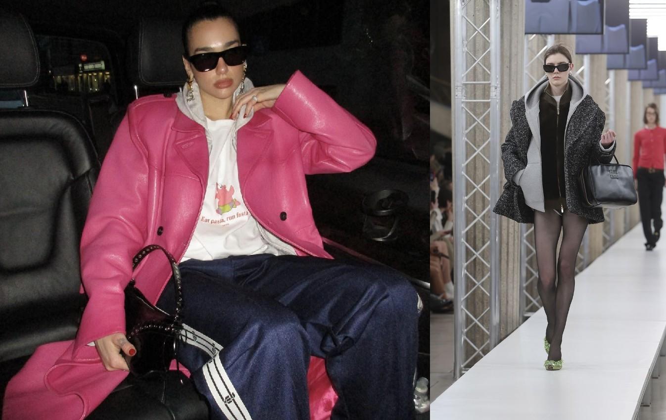 如果覺(jué)得太運(yùn)動(dòng)休閑的穿搭中加入復(fù)古大耳飾太突兀,反差太大,可以像啪姐和miumiu23秋冬T臺(tái)一樣,休閑連帽衛(wèi)衣外穿一件廓形的大衣或者皮衣,用廓形外套與耳飾風(fēng)格上暗暗呼應(yīng)`,整體就和諧許多了,是“你(休閑)中有)我(精致復(fù)古),我中有你”的“夾心”式搭配