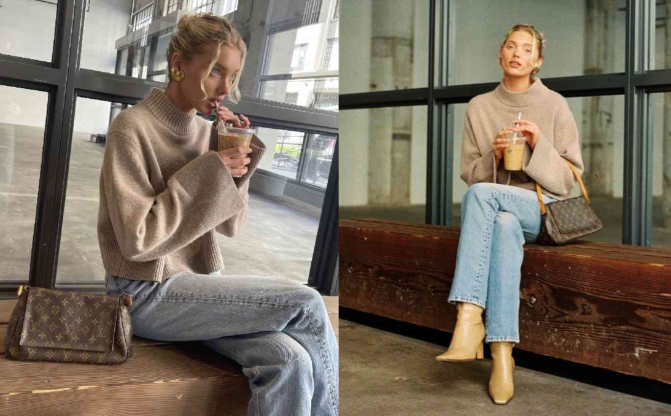 elsa hosk這套也蠻日常的,思路同樣可以參考,毛衣牛仔褲春日必備,用高跟鞋呼應(yīng)耳飾的女人味,用中古包呼應(yīng)耳飾的復(fù)古感~整體性同樣也很高~