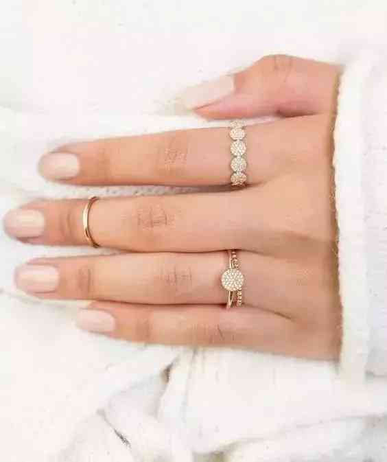 雖然疊戴很時(shí)尚,但如果每根手指都戴上戒指,太緊促、繁復(fù),反而顯得累贅,適度留白能放大藝術(shù)性和美感,留給人想象的空間,每只手留出一兩根、甚至三根手指的空白,更有風(fēng)頭哦,同時(shí)要避免小拇指、無(wú)名指同時(shí)戴,以免招來(lái)過(guò)路財(cái)神,有財(cái)卻留不住,還可能漏財(cái)。