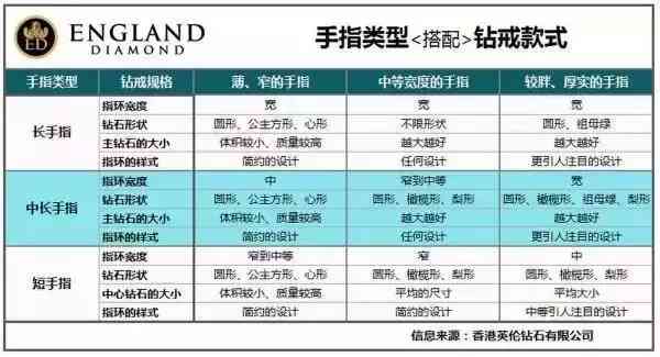 “手指類型配搭鉆戒款式”表,幫助您挑選適合自己的鉆戒: