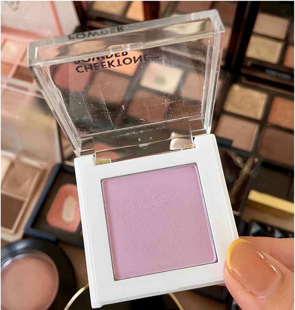 說(shuō)到腮藍(lán),就不得不提一提腮藍(lán)的好兄弟腮紫了。腮紫和腮藍(lán)的區(qū)別就是,腮紫沒(méi)有辦法像腮藍(lán)一樣做啞光高光來(lái)使用,涂在平時(shí)涂腮紅的區(qū)域就好啦,或者當(dāng)做膨脹色腮紅或者打底腮紅來(lái)使用。