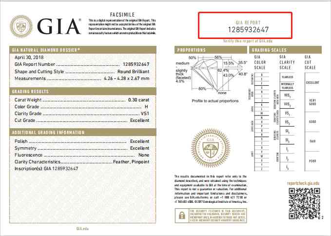 首先,對(duì)于證書真假問題,我們要知道,每一張GIA證書上都有各自異獨(dú)一無二的證書編號(hào),這個(gè)編號(hào)就像每個(gè)人的身份證號(hào)碼一樣,消費(fèi)者在購買鉆石之后到GIA官網(wǎng)中輸入證書編號(hào),能夠查詢到相應(yīng)的鉆石信息,點(diǎn)擊“下載PDF版本”,從而得到一份與紙質(zhì)GIA證書一模一樣的電子證書,對(duì)照電子證書,就可以輕松判斷出紙質(zhì)證書的真?zhèn)?。另外,掃描GIA證書右下方二維碼也可以進(jìn)入GIA官網(wǎng)查詢鉆石信息。