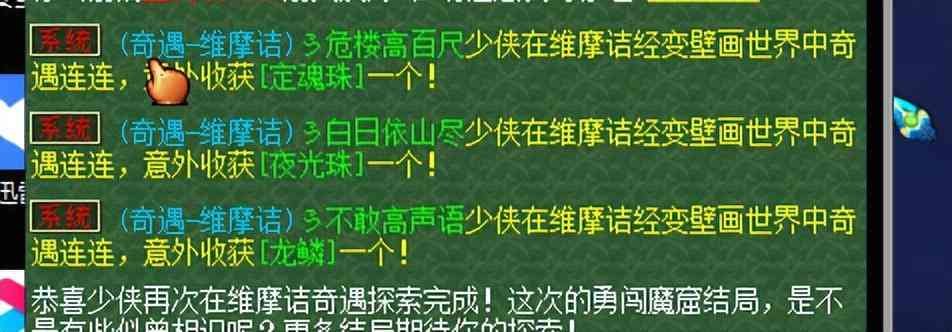 大家在五開(kāi)的時(shí)候,會(huì)去刷奇遇嗎?反正極光是懶得刷,主要是獎(jiǎng)勵(lì)拉胯和時(shí)間不夠,上班黨表示抓鬼不香嗎?所以這玩法出來(lái)到現(xiàn)在,刷過(guò)的次數(shù)寥寥無(wú)幾。然而今天卻被一位玩家被打擊到了,他展示了一次維摩詰?yīng)剟?lì),拿了四個(gè)大五寶加一個(gè)龍鱗,簡(jiǎn)直秀翻了天!
