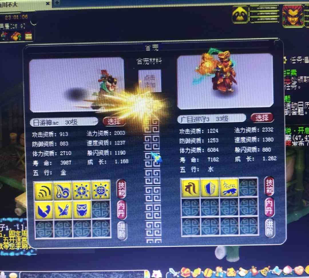 煉妖是很多玩家喜歡的休閑玩法,也很刺激,兩只寶寶的“激情碰撞”,能讓腎上腺素瞬間狂飆。一位粉絲玩家發(fā)來(lái)投稿,他準(zhǔn)備了一波中等質(zhì)量的煉妖,7技能日游神+3技能廣目回爐。