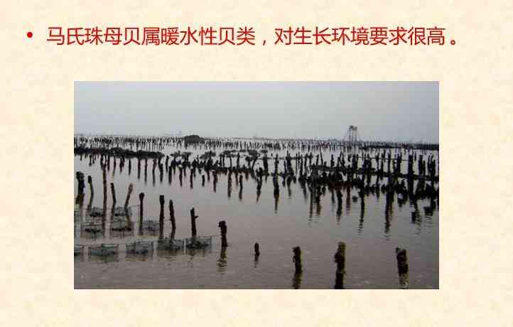 珠貝生長(zhǎng)周期較長(zhǎng),賦性嬌嫩,既經(jīng)受不住酷暑嚴(yán)寒,又懼怕狂流濁水,因此港灣開敞,海水清澈,水流不急,海水溫度保持在15-25攝氏度之間,海水比重在1.018至1.020幅度內(nèi)是馬氏珠貝生活的樂園。而北海市即古合浦沿海,具備適宜珠貝生產(chǎn)、繁殖的優(yōu)越條件。