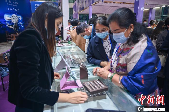 本屆寶石節(jié)吸引中國(guó)各地以及東盟、南亞地區(qū)嘉賓和客商參觀(guān)、展銷(xiāo)、洽談。展會(huì)現(xiàn)場(chǎng),人工寶石商品品種齊全,涵蓋胸針、戒指、手鐲等多個(gè)品類(lèi)。商家精心布置的珠寶展柜令不少顧客駐足,模特手上的珠寶也亮點(diǎn)十足。精致造型外加實(shí)惠價(jià)格,引得現(xiàn)場(chǎng)顧客爭(zhēng)相購(gòu)買(mǎi)。