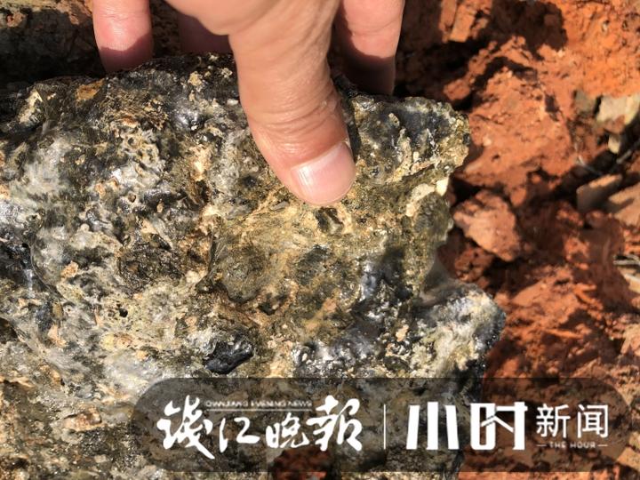 大概在兩周以前,臨安的一個(gè)村民在河橋鎮(zhèn)、湍口鎮(zhèn)交界處的溪邊山腳發(fā)現(xiàn)了一塊呈現(xiàn)明顯墨綠光澤、幾無雜質(zhì)且外表光滑的石頭:不重,很硬,樣子非常奇怪。