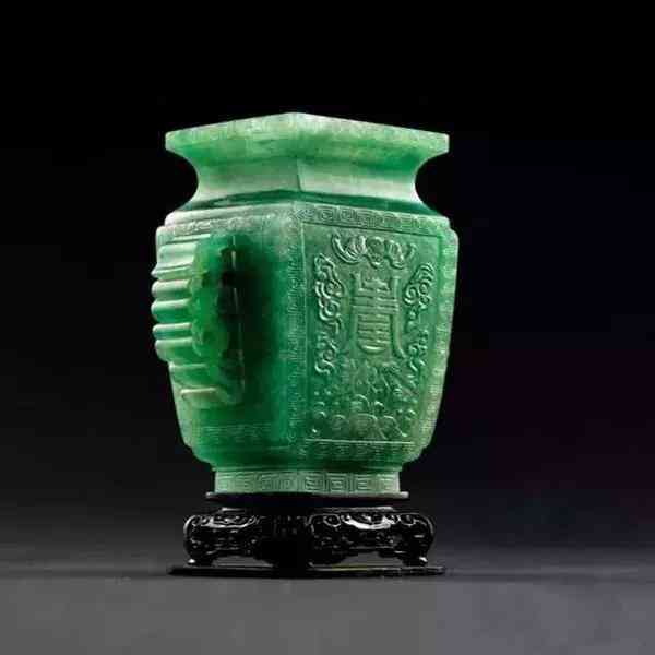 清乾隆 御制翡翠雕福壽紋螭龍耳四方瓶