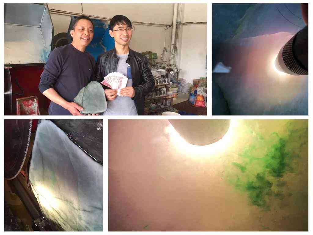 春節(jié)那天,一位臨滄朋友,來店里參觀,看到很多翡翠原石,想著買個便宜的玩玩,打燈透亮的價格高,便叫店主推薦了一塊,莫彎基16公斤,皮殼較厚,看不見一點表現(xiàn),價格便宜,當時客戶感覺和這塊原石有緣,便以4500元選購了這塊原石,結(jié)果開出翻了百倍!