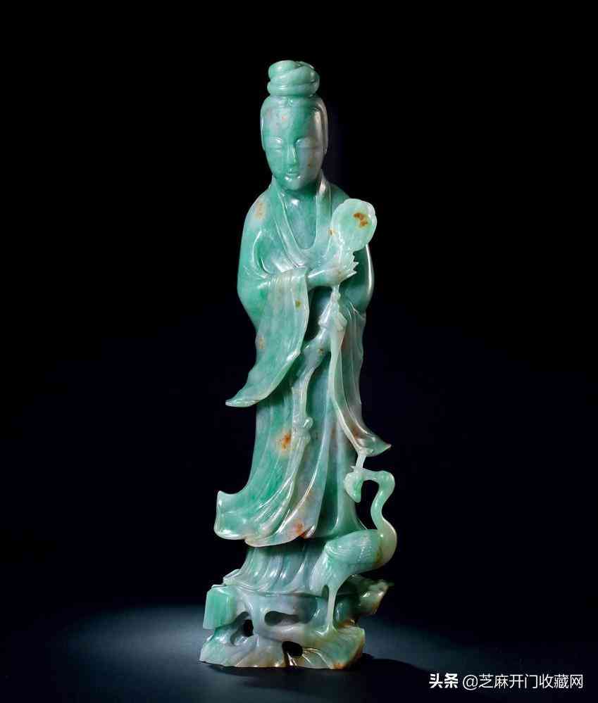 18世紀翠玉仙鶴觀音,尺寸:高48厘米,估價:RMB 3,800,000 ~ 5,800,000,成交價: RMB 4,370,000