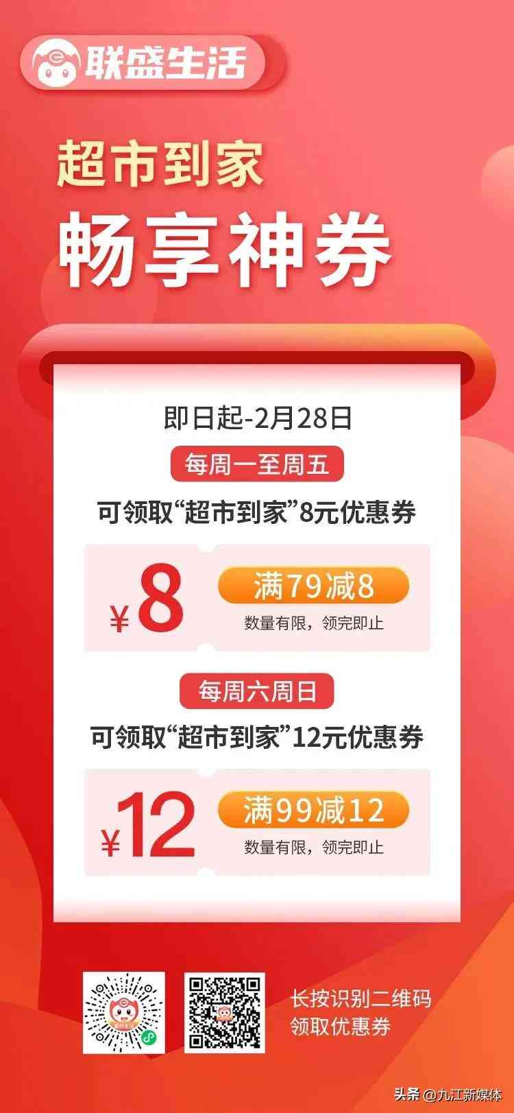 即日起-2023年2月28日,登錄聯(lián)盛生活A(yù)PP/微信小程序,領(lǐng)“超市到家”8/12元優(yōu)惠券!