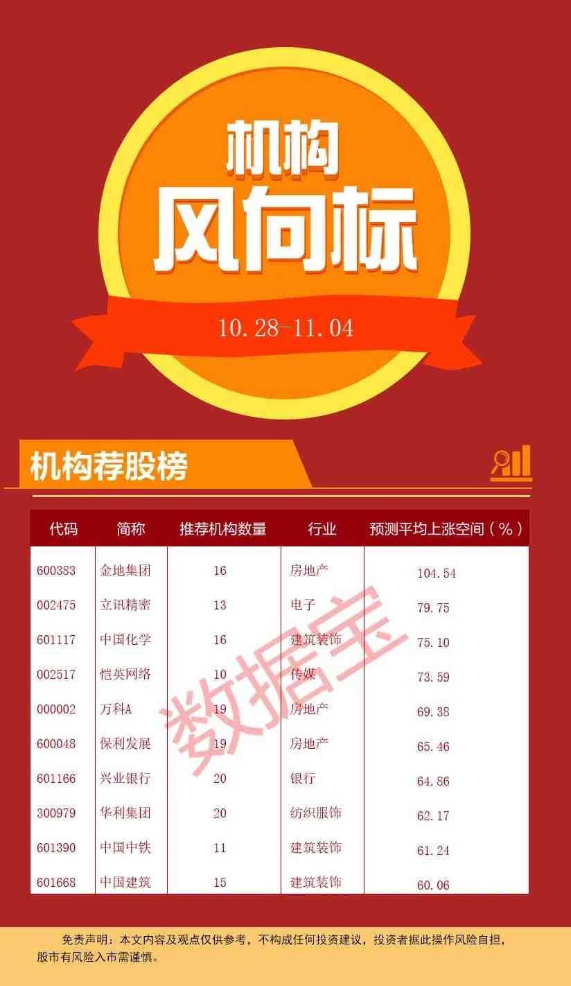 數(shù)據(jù)寶統(tǒng)計(jì),在獲10次及以上機(jī)構(gòu)評(píng)級(jí)的234股中,10股上漲潛力超過60%,其中金地集團(tuán)上漲潛力為104.54%居于首位。行業(yè)分布上來看,機(jī)構(gòu)看好多只地產(chǎn)和建筑板塊個(gè)股,包括金地集團(tuán)、萬科A、中國(guó)中鐵、中國(guó)建筑,價(jià)較機(jī)構(gòu)一致目標(biāo)價(jià)均有60%以上的上漲空間。
