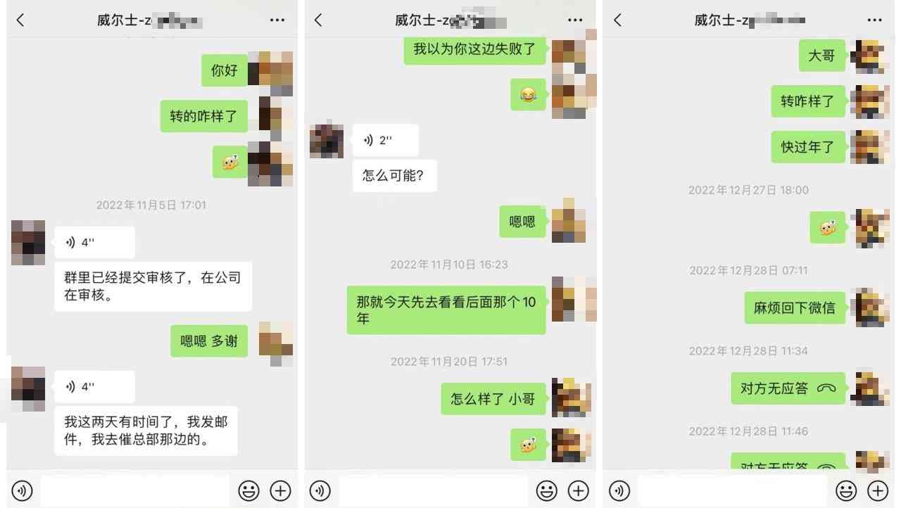 那位男銷售隔著小圓桌,還給我展示了微信上一些轉(zhuǎn)卡成功的聊天對話,說手頭就有談妥的現(xiàn)成客戶,很快就能出售,之后就直接走公司流程,讓我等著拿錢,穩(wěn)賺不賠,還可以幫我做分期付款,手續(xù)費也由他承擔(dān),年底轉(zhuǎn)卡后直接扣除。他還說,萬一真轉(zhuǎn)賣不出去,也能幫我原價退款,我無需承擔(dān)任何風(fēng)險。