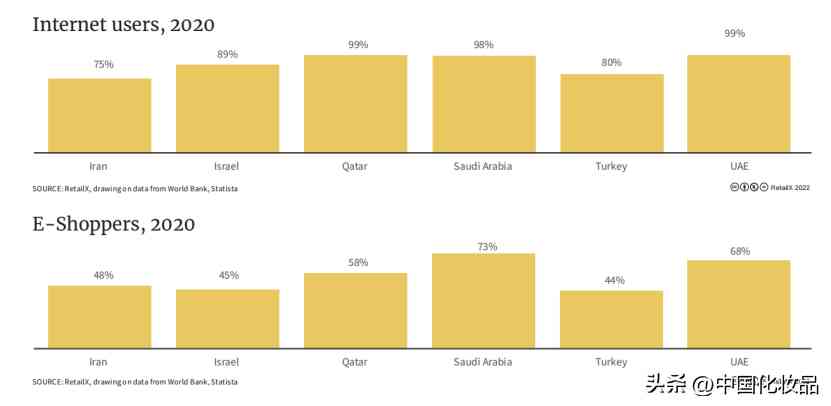 據分析機構RetailX數據顯示,在他們統計的6個中東國家(伊朗、以色列、卡塔爾、沙特阿拉伯 、土耳其)中,互聯網使用率已上升到90%,其中58%是網購者。