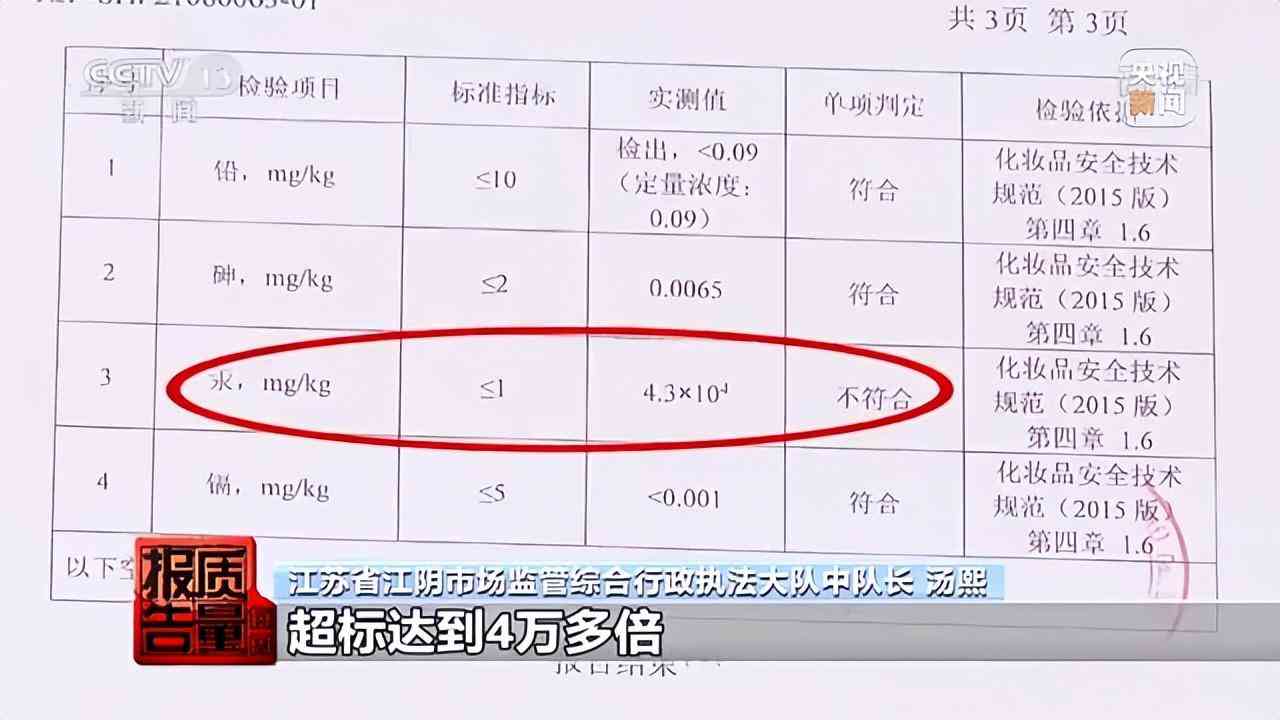 江陰市場監(jiān)管局藥械科科長 承海燕:經(jīng)檢測,“非賣品”套盒中的夜霜,汞含量超標(biāo)5700倍。檢測結(jié)果與消費(fèi)者自行送檢的結(jié)果是一致的。