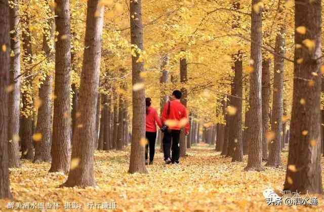 深秋的泗水是金黃的。泗水城區(qū)圣源湖畔的銀杏園,滿樹金黃的葉子在陽光的映照下熠熠發(fā)光,若遇大風(fēng),將飄落滿地,一片金黃,這美景只有短短一周左右,因此不能錯過,錯過又得等來年。這時,你可以在樹林里輕歌曼舞陶醉其中,也可以悠閑漫步哼上幾曲,還可以來此應(yīng)景拍個浪漫婚紗,留下一生美好而難忘的回憶,還可以約上你的知己來個創(chuàng)意之舉…..此景此情,你盡情的去暢想吧,也許你還會有更精彩的方式來表達(dá)此時你對金秋的無限深情和憧憬……