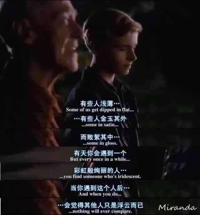 電影原句:Some of us get dipped in flat, some in satin,some in gloss. But every once in a while you find someone who's iridescent, and when you do, nothing will ever compare.