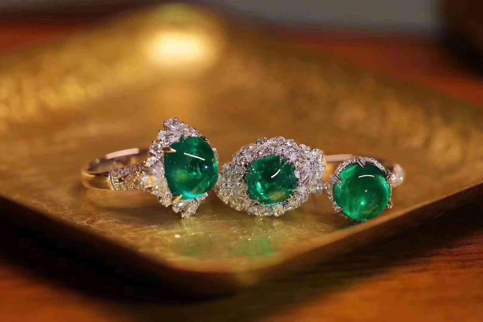 鑲嵌方式對彩寶的顏色和價值的影響:我們看到的彩寶多是采用豪華款的群鑲方式,一是突出了寶石首飾的價值,二也是為了加深寶石的視覺色彩。因為簡單的四爪鑲嵌的彩色寶石,看上去比包鑲的顏色較淺,比如祖母綠,藍(lán)寶石都是這種效果。