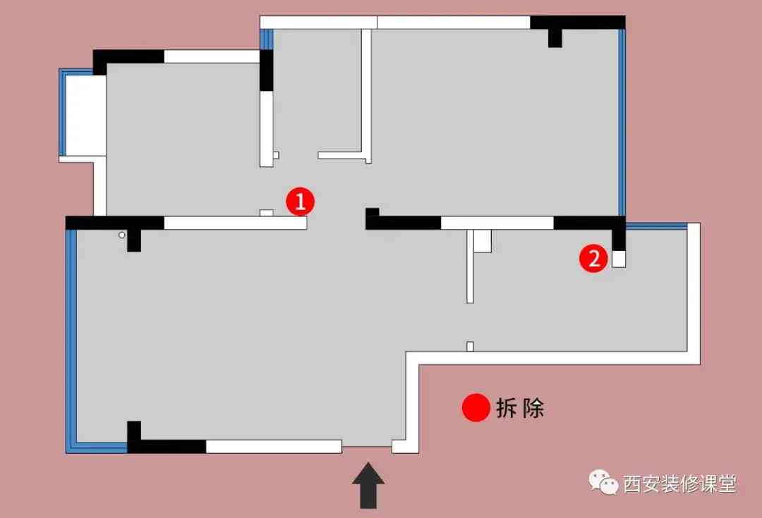 ▲最終布局圖紙,原有格局幾乎沒有改動(dòng),因?yàn)樾^(qū)老舊,物業(yè)壓根提供不了房子的結(jié)構(gòu)圖紙,只能在鏟掉墻皮以后自行判斷,最終只是把進(jìn)入臥室過道的一段墻砸掉,讓進(jìn)入臥室更通暢;廚房與洗衣間的門聯(lián)窗砸掉,融為一體,拓展廚房收納的同時(shí),滿足采光需求;其他格局一個(gè)都沒有動(dòng)。