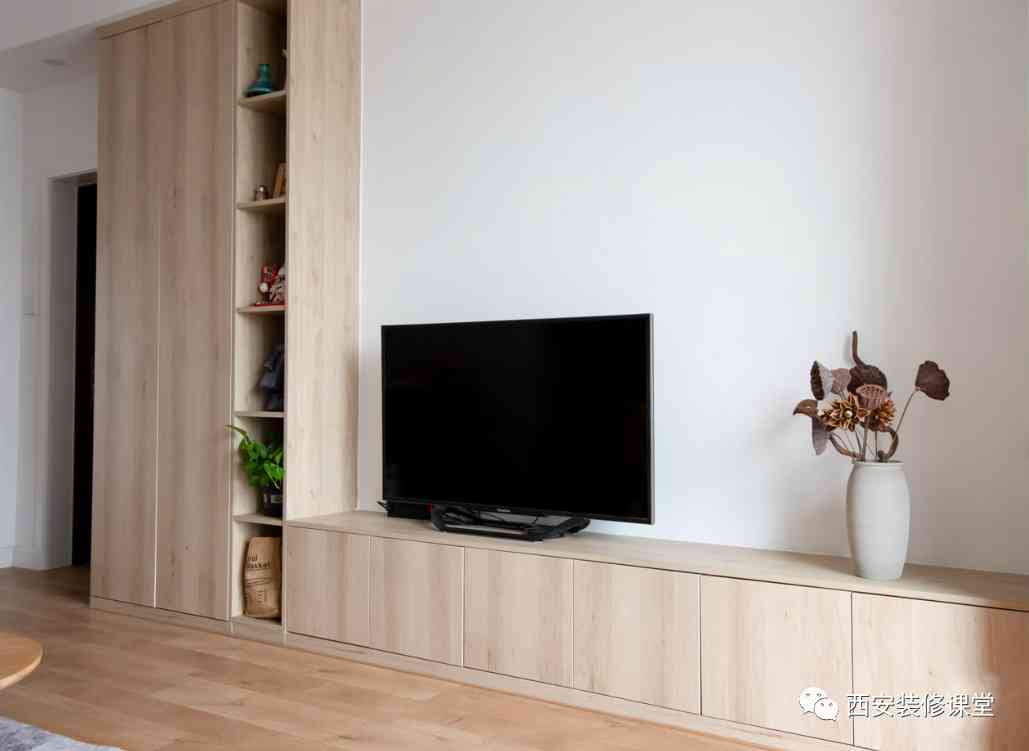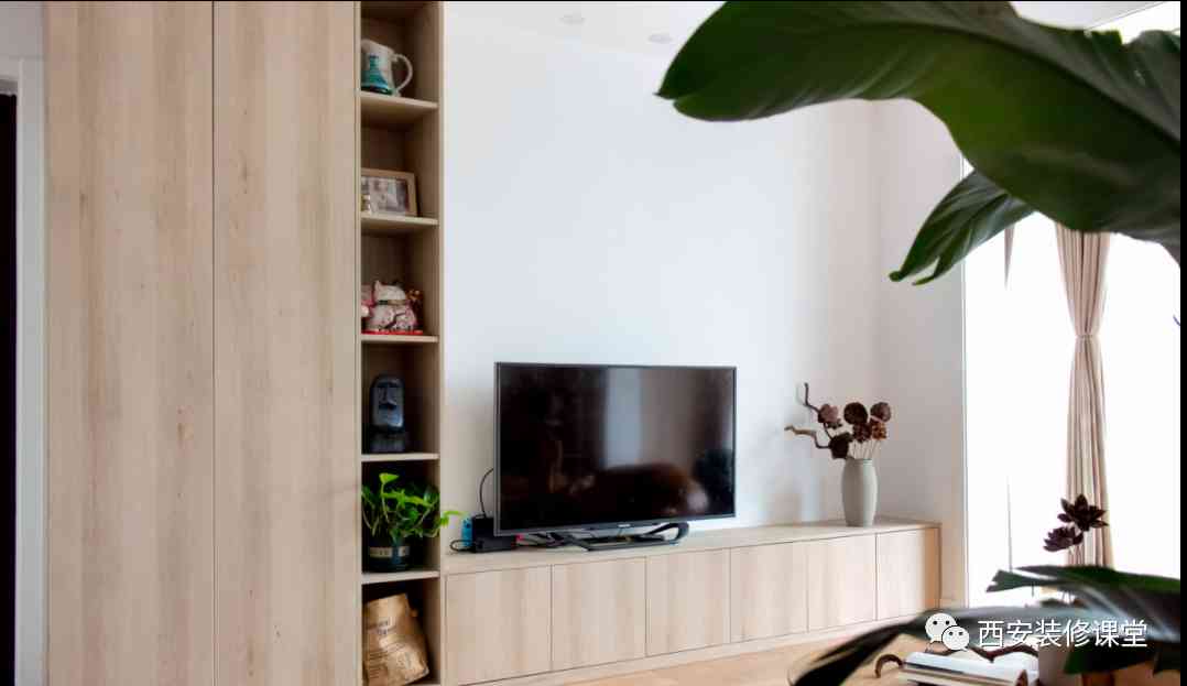 ▲進(jìn)門左手就是電視墻,為了滿足一定的雜物收納,采用L性收納定制的形式,既滿足電視墻功能,同時(shí)彌補(bǔ)儲(chǔ)物的不足,同樣的木質(zhì)的溫潤與大白墻的簡單搭配;局部鏤空做了展示使用,平時(shí)可以放一些好看的飾品,裝點(diǎn)一下會(huì)客區(qū)域