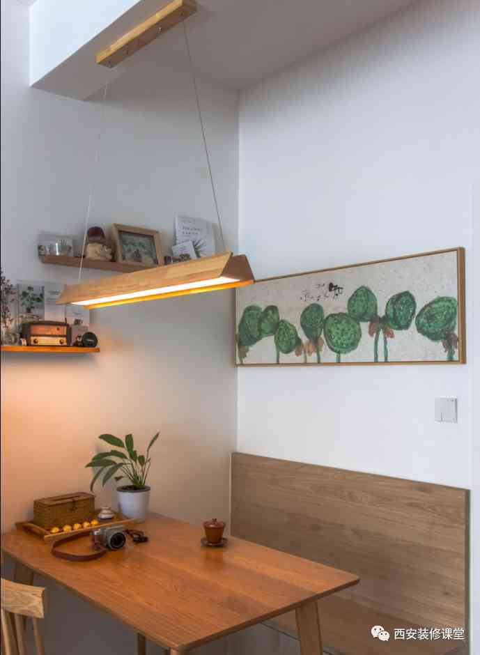 ▲禪意自然的掛畫以及木質(zhì)隔板的擺件裝飾,小空間也能溫馨自然