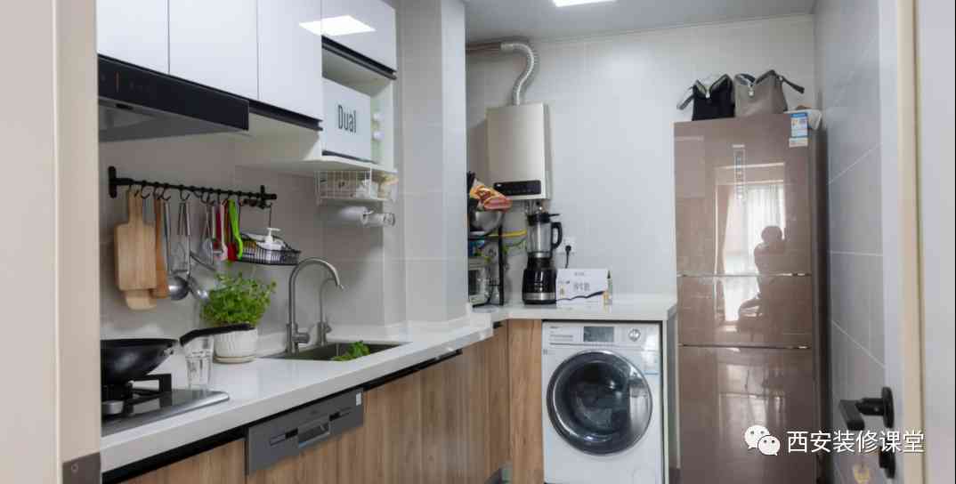 ▲原來很小的廚房,打通洗衣間以后,空間大了很多,也完美實(shí)現(xiàn)冰箱以及洗烘機(jī)的布局,同時(shí)很小的窗戶也能引光入室