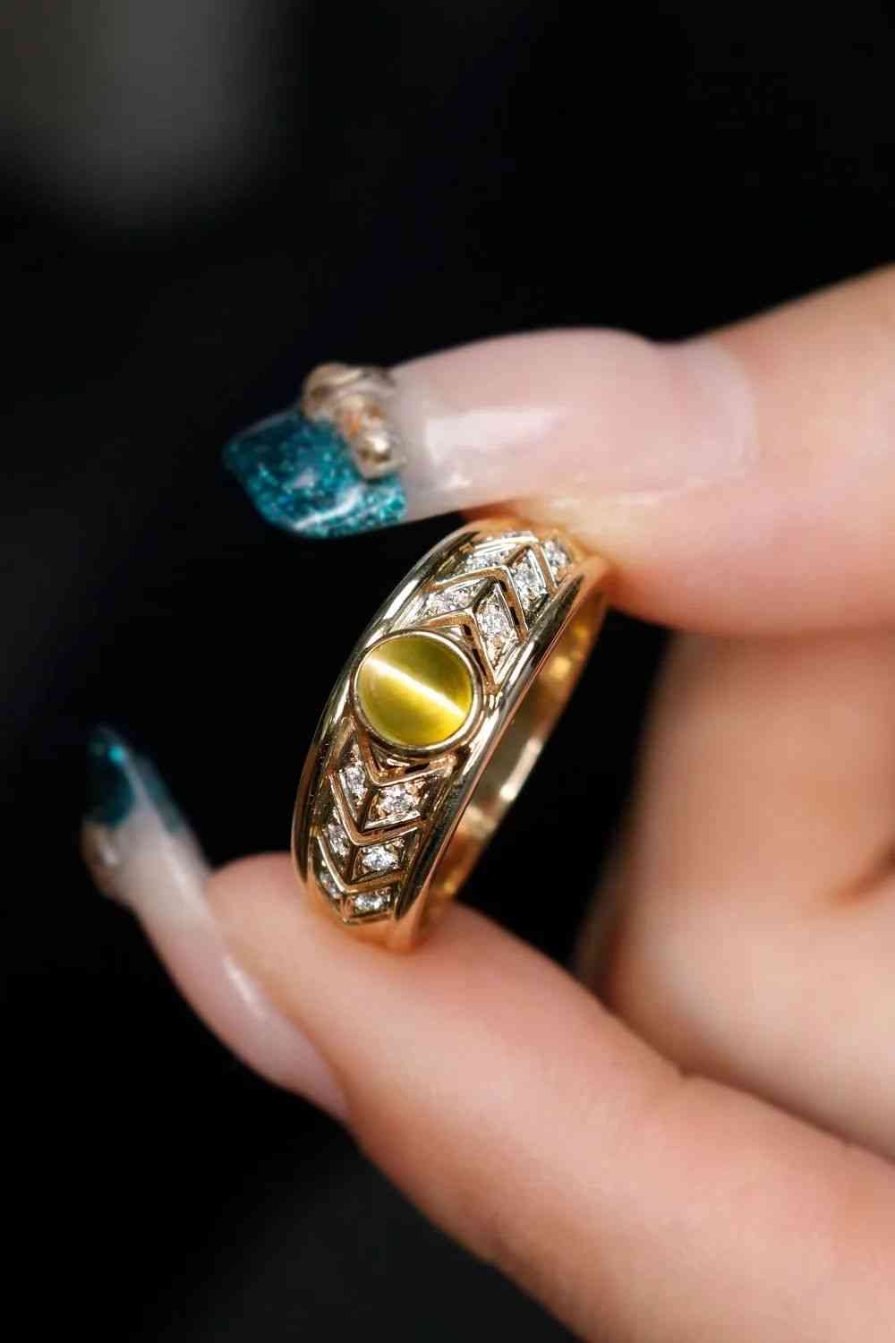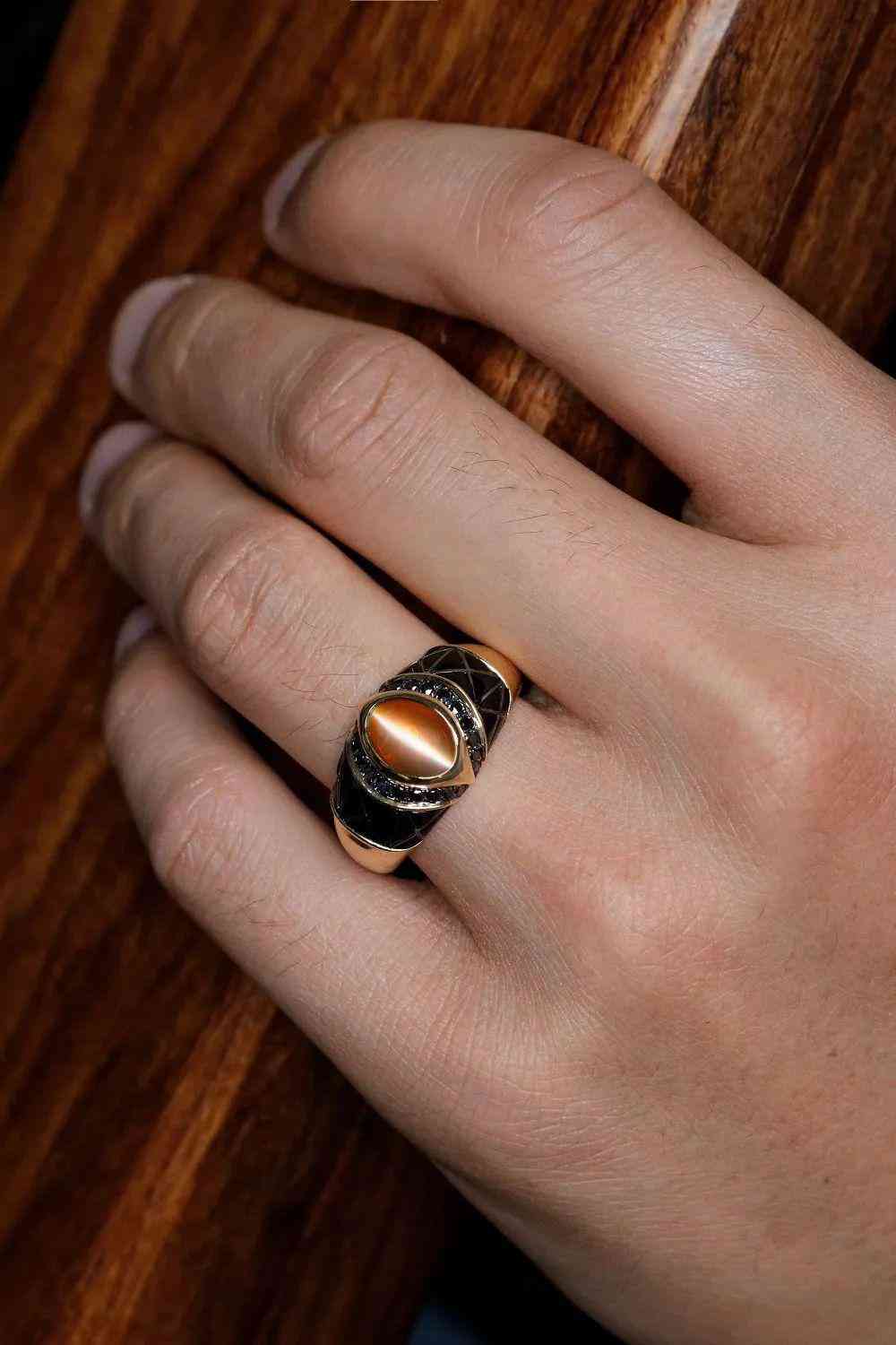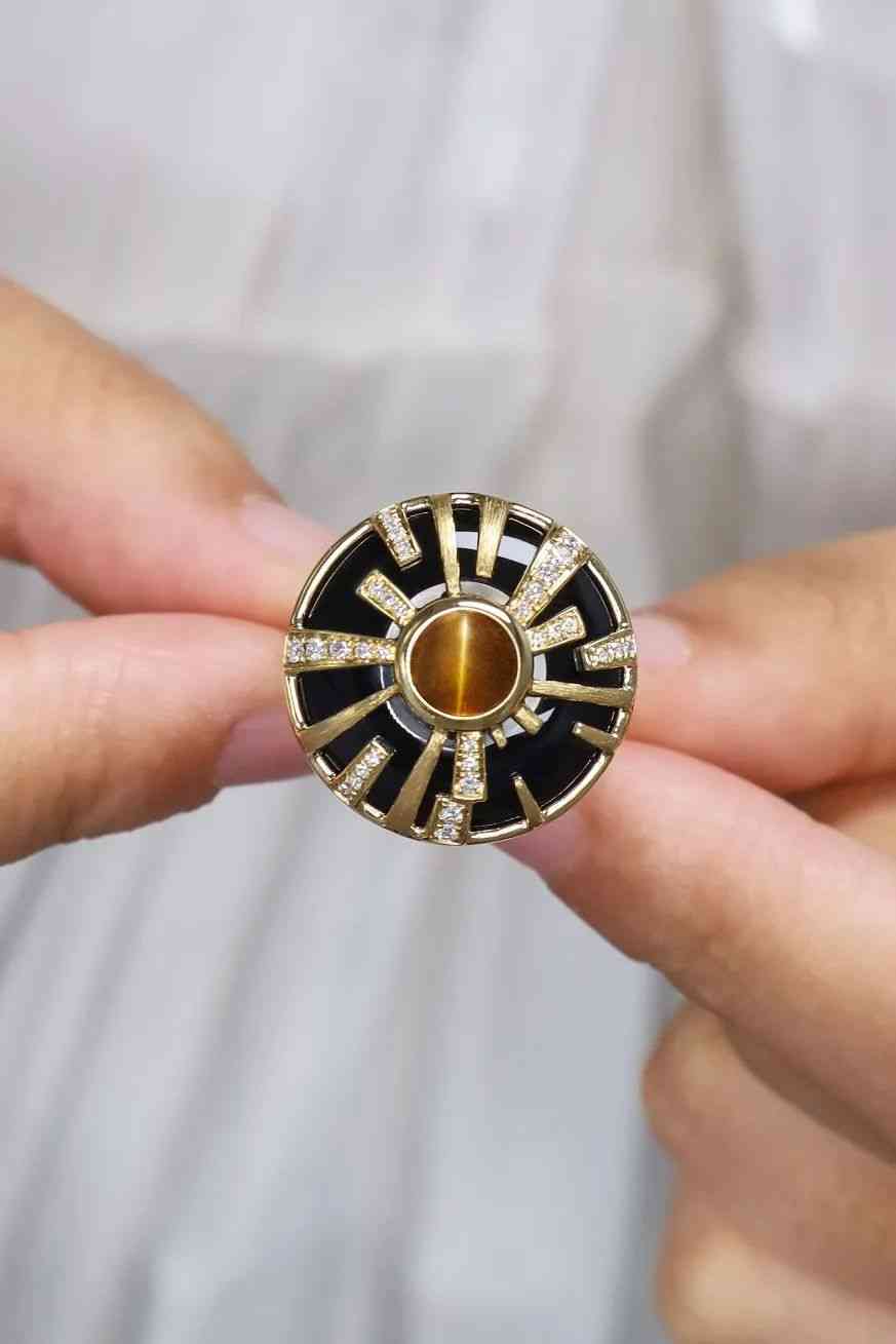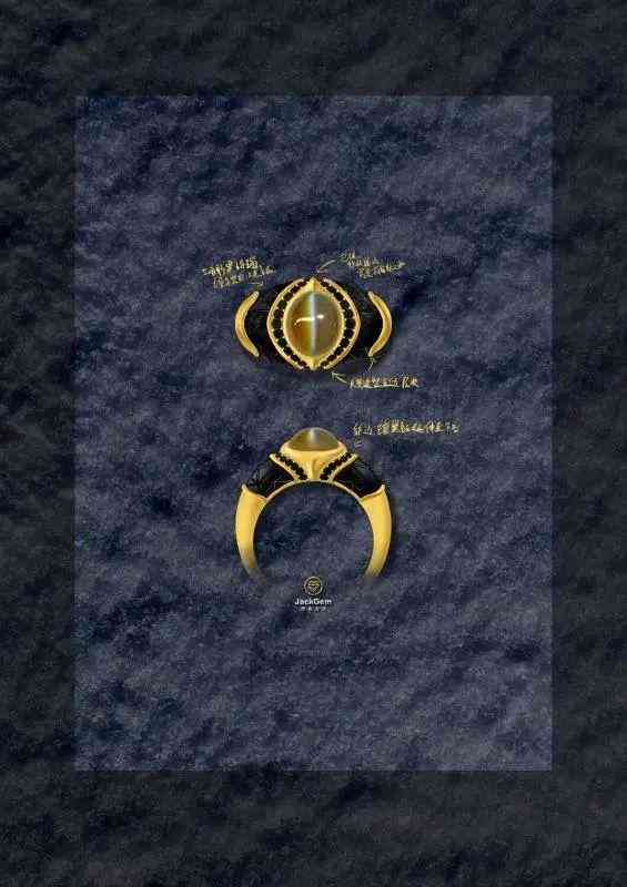 主石采用包鑲,造型設(shè)計(jì)為眼睛,側(cè)面三角形的黑瑪瑙切割。低調(diào)高級的黑金配色貓眼,還原古埃及貓眼戒指的風(fēng)貌!