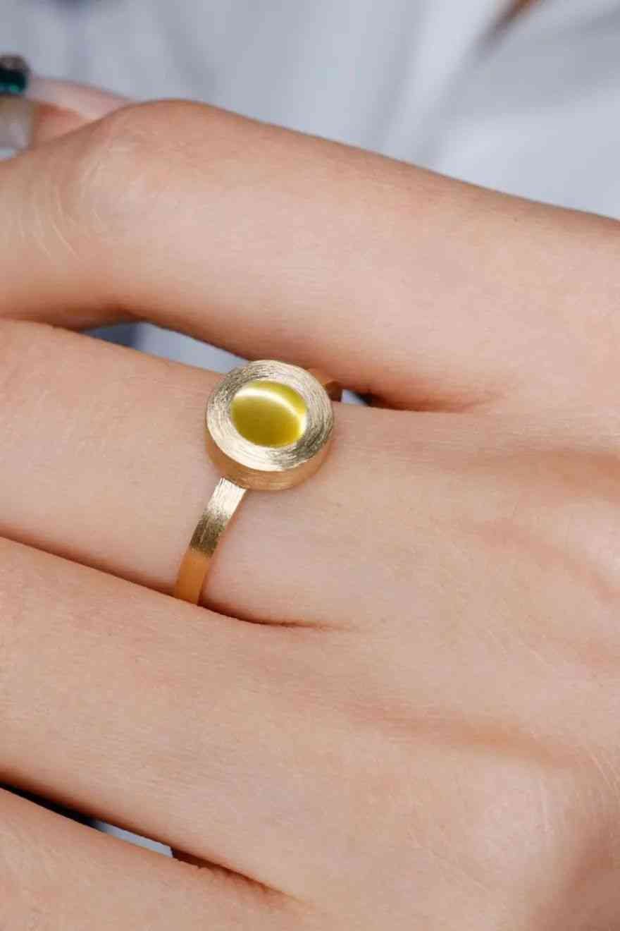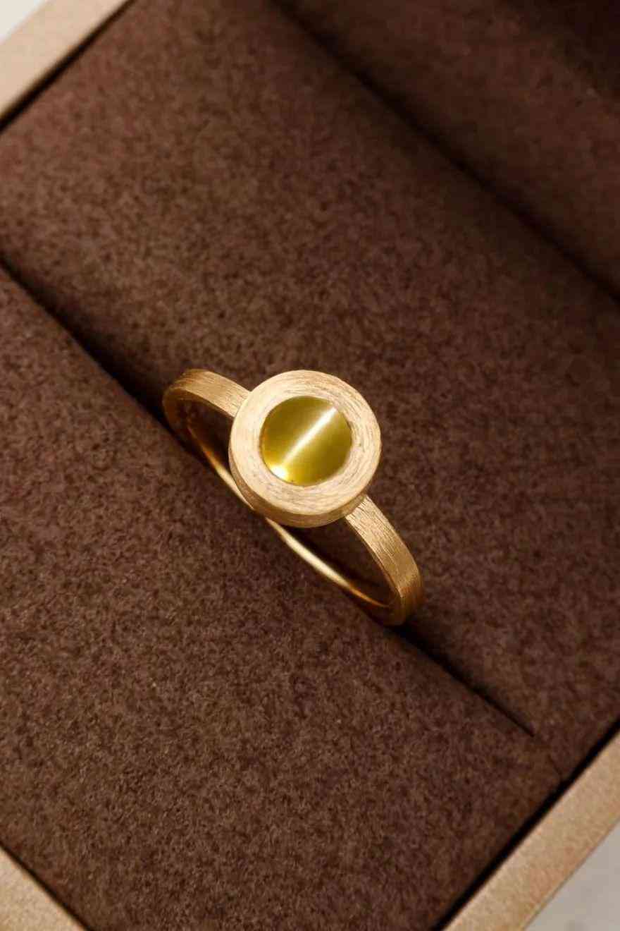 純素面黃金包鑲貓眼石,干脆利落,又簡約有型。我們的工藝師對黃金做了磨砂處理,顯得很有質(zhì)感,加上整件作品流暢的線條設(shè)計(jì),以及絲毫看不出鑲嵌痕跡的做工,讓它有一種小而精的獨(dú)立美,不張揚(yáng),有內(nèi)涵。
