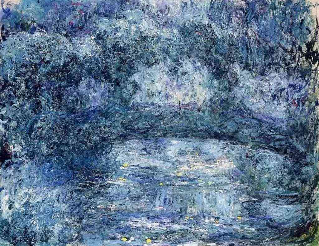 巨幅睡蓮組圖是法國印象派畫家克勞德·莫奈在74歲開始創(chuàng)作持續(xù)12年直到86歲為止的畫作。這是一部宏偉史詩,是莫奈一生中最輝煌燦爛的“第九交響曲”。巨幅睡蓮—遠看灰,近看全是顏色。一個人的色覺越好,看到的顏色就越多。莫奈1926年去世,此前視力情況一直很糟糕,幾近失明,但依舊持續(xù)作畫,花園里的蓮池亦成了莫奈藝術追求的最后寄托,他用極度的熱情繪制著“睡蓮”組畫,睡蓮組畫里印證著莫奈頑強的生命力度以及對愛妻卡米勒的思念。在這片由濃烈色彩構成的繽紛世界里,睡蓮成為了色彩的魔幻載體,那些短暫的生命獲得了永恒。