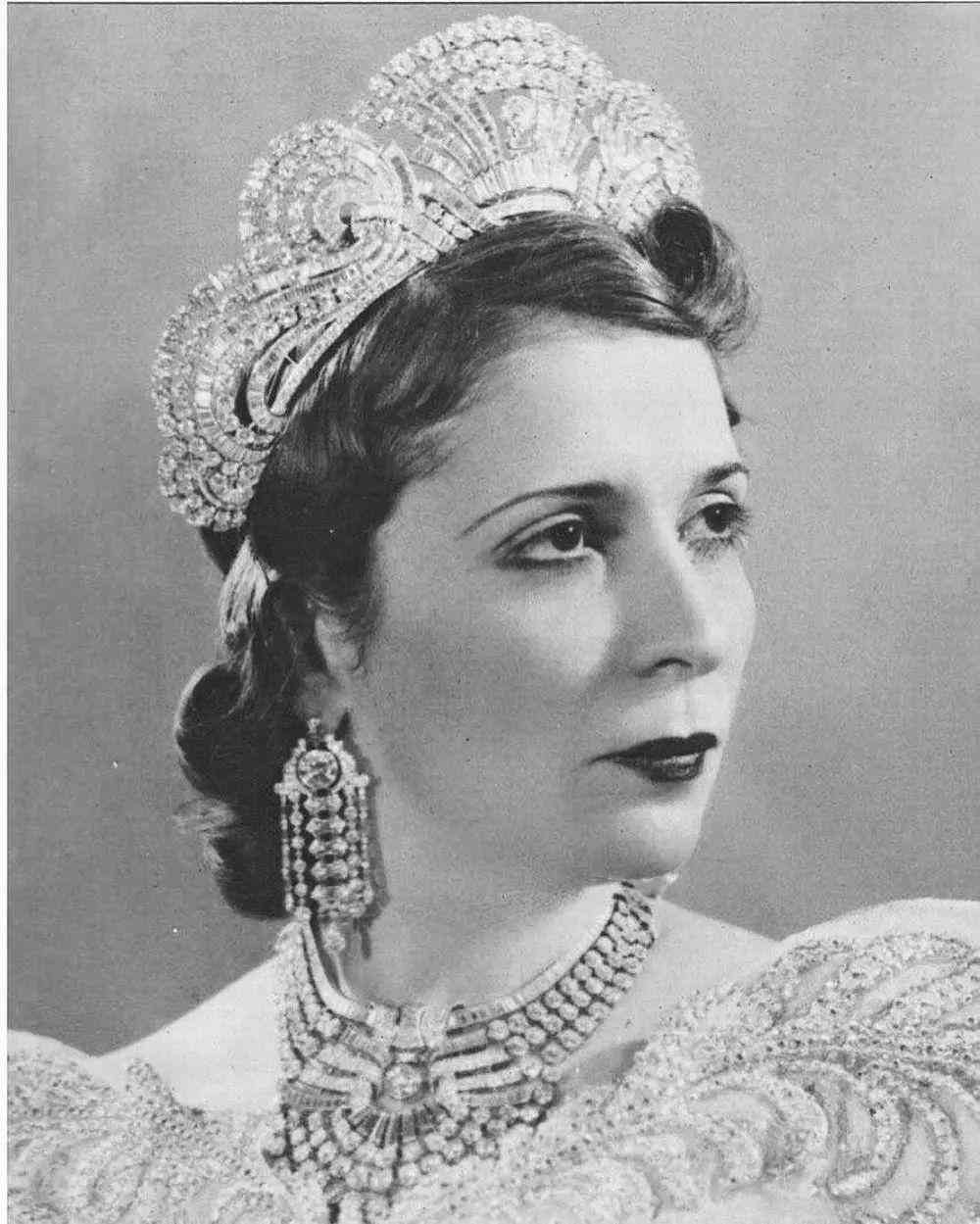 納絲莉王后在法齊亞公主的婚宴上次佩戴這條項(xiàng)鏈,這件豪奢的項(xiàng)鏈也成為她的心頭好之一。后來(lái),在 2015 年它在紐約蘇富比拍賣(mài)中被梵克雅寶回購(gòu)成為品牌的典藏系列之一。