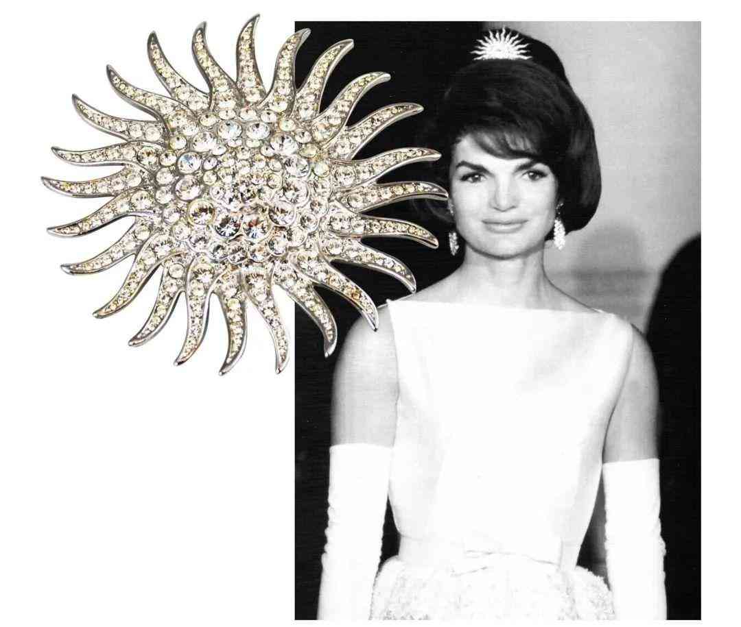 杰奎琳·肯尼迪將鉆石旭日胸針佩戴在發(fā)髻上