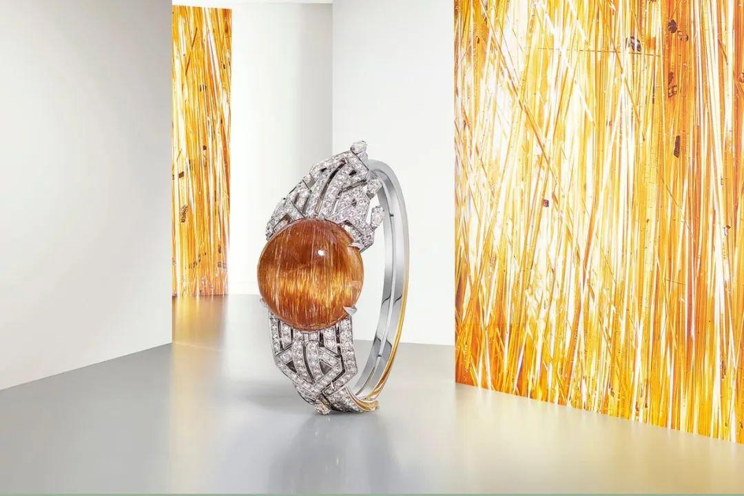而同系列的 Sorelli 隱秘腕表和項(xiàng)鏈也都是以發(fā)晶為主石,深金色的色彩,細(xì)密的內(nèi)含物,加上鉆石的映襯,完美展現(xiàn)了太陽(yáng)光的璀璨。